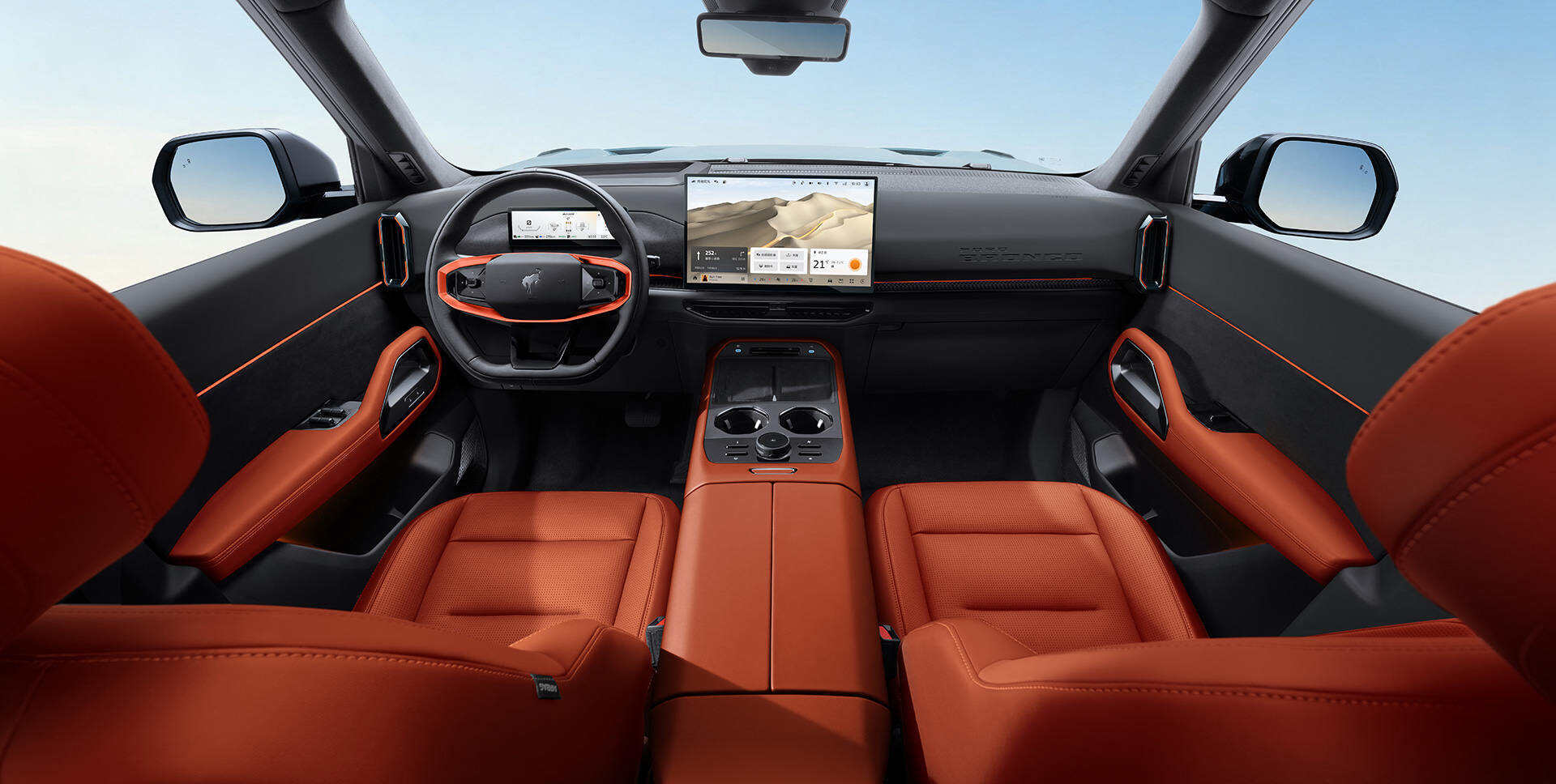 进入车内,福特智趣烈马的内饰在保留燃油版硬派基因的同时,融入了前沿科技与时尚设计。15.6英寸2.5K悬浮式中控屏与8.8英寸全液晶仪表的双屏组合,配合三幅平底多功能方向盘及电子怀挡设计,营造出未来感十足的驾驶氛围。智能中枢搭载高通骁龙8255旗舰芯片,支持四区域语音精准识别、自然连续对话、人脸识别登录、车载KTV娱乐、手机无缝互联以及DeepSeek深度接入的全场景交互生态。新车全系标配L2级驾驶辅助系统,高配车型更是配备了包括辅助泊车、遥控泊车以及高速领航辅助在内的多项高级功能。为了满足户外出行的需求,该车还特别装备了7.5升冷暖冰箱及一个集电磁炉与置物平台于一体的模块化多功能尾门等实用配置。方程豹钛7的内饰设计则延续了外观的科技风格,采用整体趋于平直的双层环绕悬浮式中控台布局,配合四辐式多功能方向盘、悬浮式中控屏以及圆角矩形空调出风口,彰显时尚气息。其智能座舱具备7屏联动交互功能,包括15.6英寸中控屏、10.25英寸液晶仪表、26英寸W-HUD、空调旋钮显示屏、后排空调控制屏,以及支持安装两个13英寸BYD Pad的后排娱乐系统,充分满足全家人的娱乐需求。在驾驶辅助领域,钛7配备了天神之眼B-辅助驾驶激光版,最高搭载30个辅助驾驶感知硬件,具备超30项驾驶辅助功能,涵盖高速/城市领航辅助、全场景的泊车辅助等,同时该车还配备高速爆胎辅助稳定控制系统,能够在140km/h的速度下实现爆胎稳停。车内提供4.5L车载冷暖冰箱,高配车型音响搭载20扬声器,主驾头枕集成独立扬声器,支持三种模式。