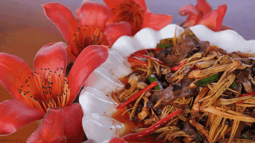 每到攀枝花盛开的季节,在树下都会看到一个个拿着口袋等着花落的市民,这时捡上一口袋,便可做一道家常菜——攀枝花炒腊肉。
